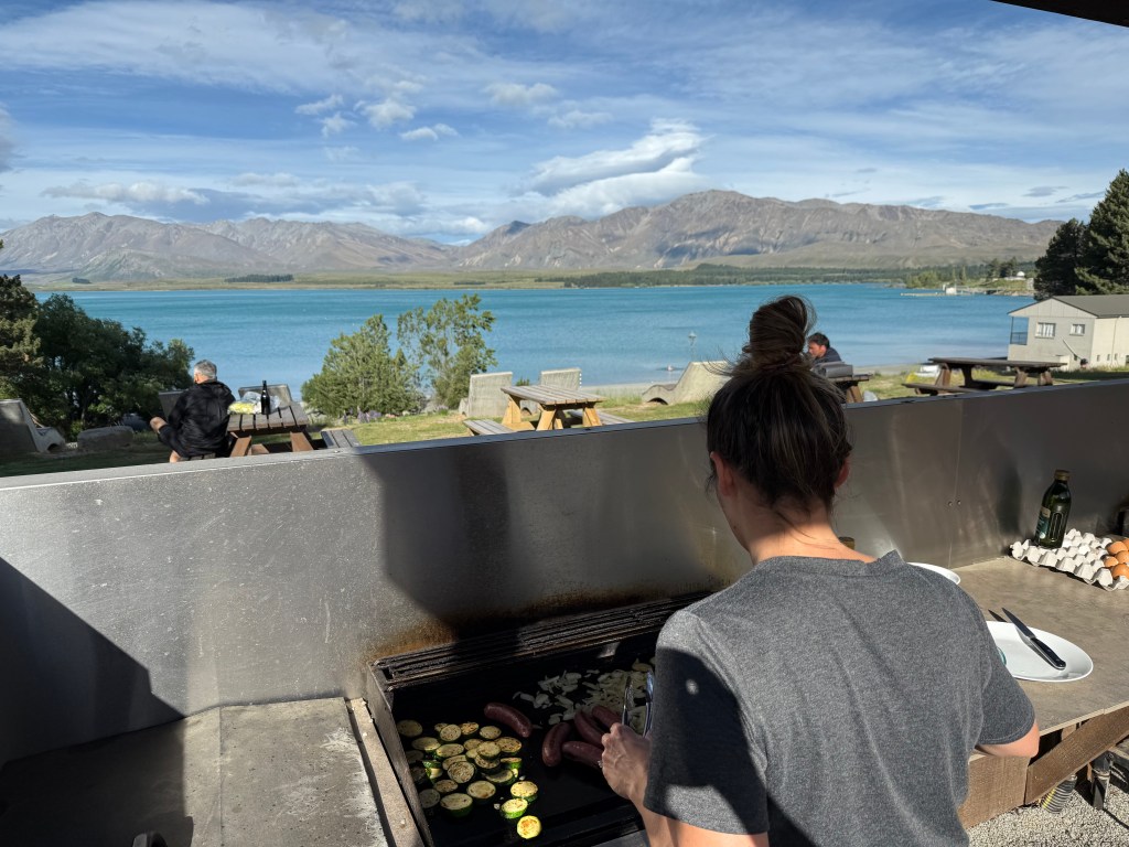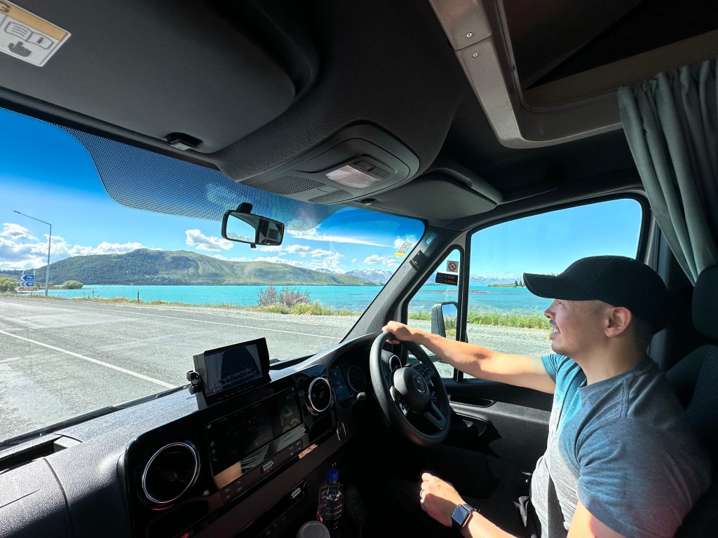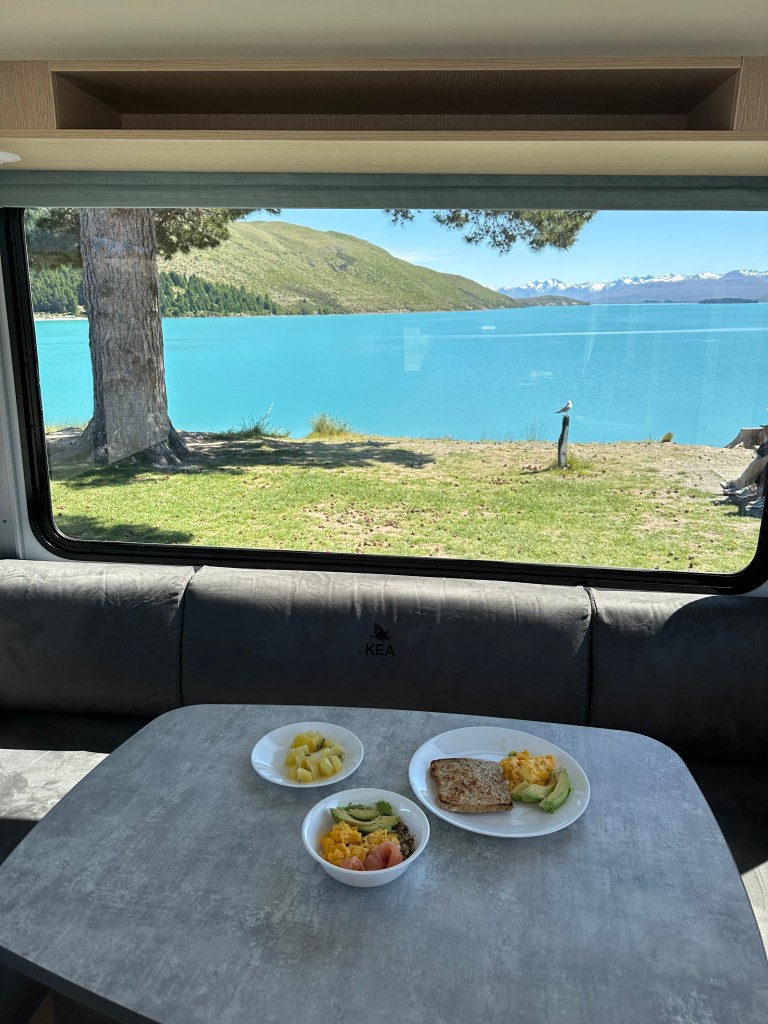 The next day we said goodbye to Lake Tekapo. We checked out of the RV campground and made another amazing breakfast on the edge of the lake. We grabbed a coffee on the way and off we went back to Christchurch.