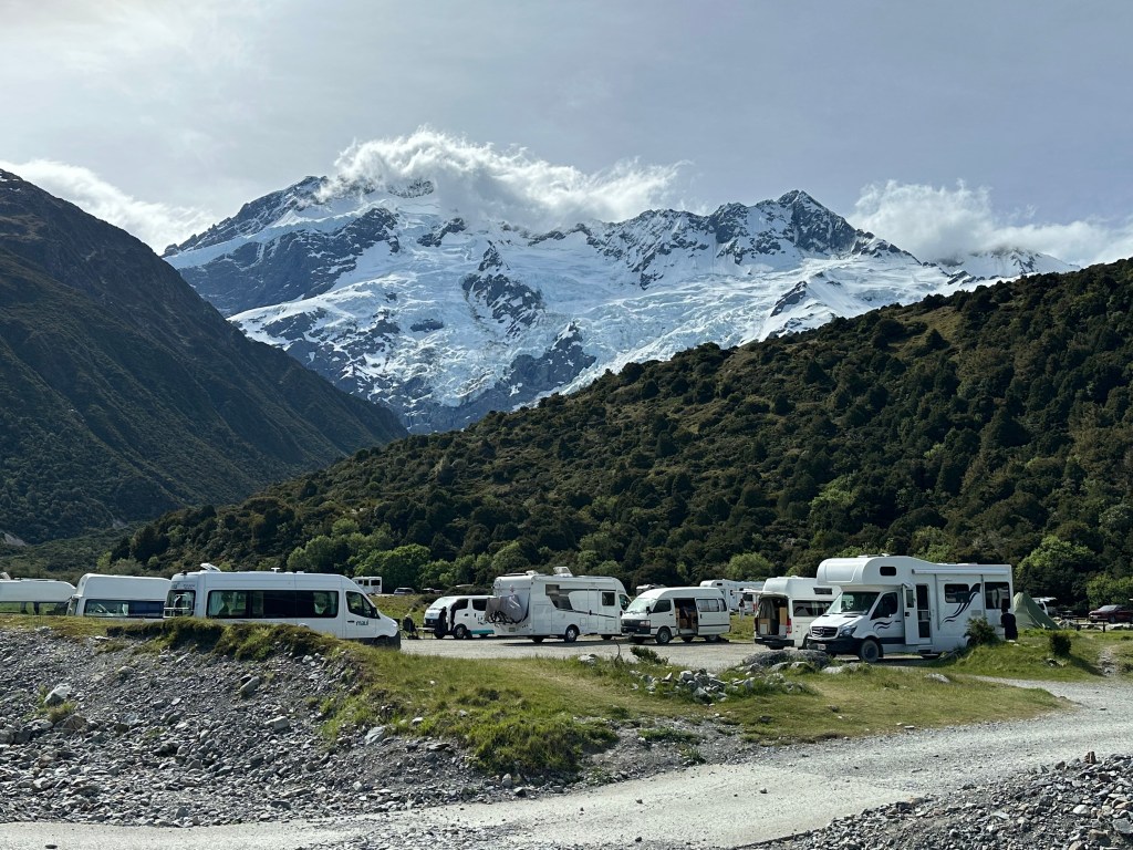We continued on to the Mt. Cook area where we settled into a little RV park at White Horse Hill Campground. We stayed there two nights since it was so central to tons of hikes and even our heli hike airport.