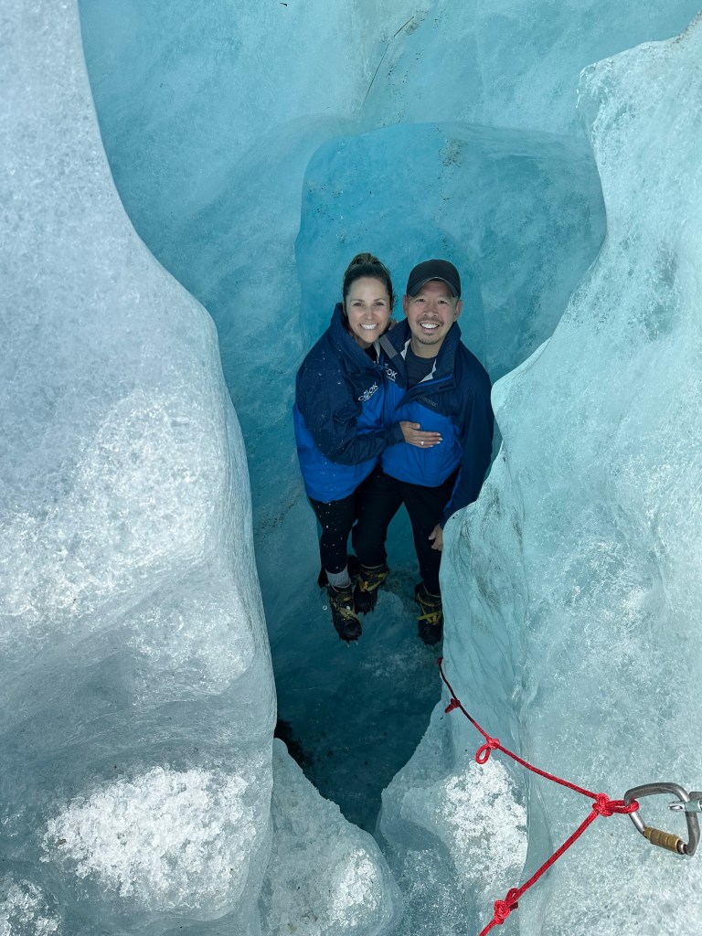 We spent about two hours on the glacier, exploring little crevasses and caves and taking in the majestic beauty. I wonder how long glaciers like this will be here and if our grandkids and great grandkids will get to do this the way we did. Will they melt due to global warming? Will tourists overtake these gorgeous places? It left us feeling immensely grateful for this opportunity to be in such pure and natural beauty.
