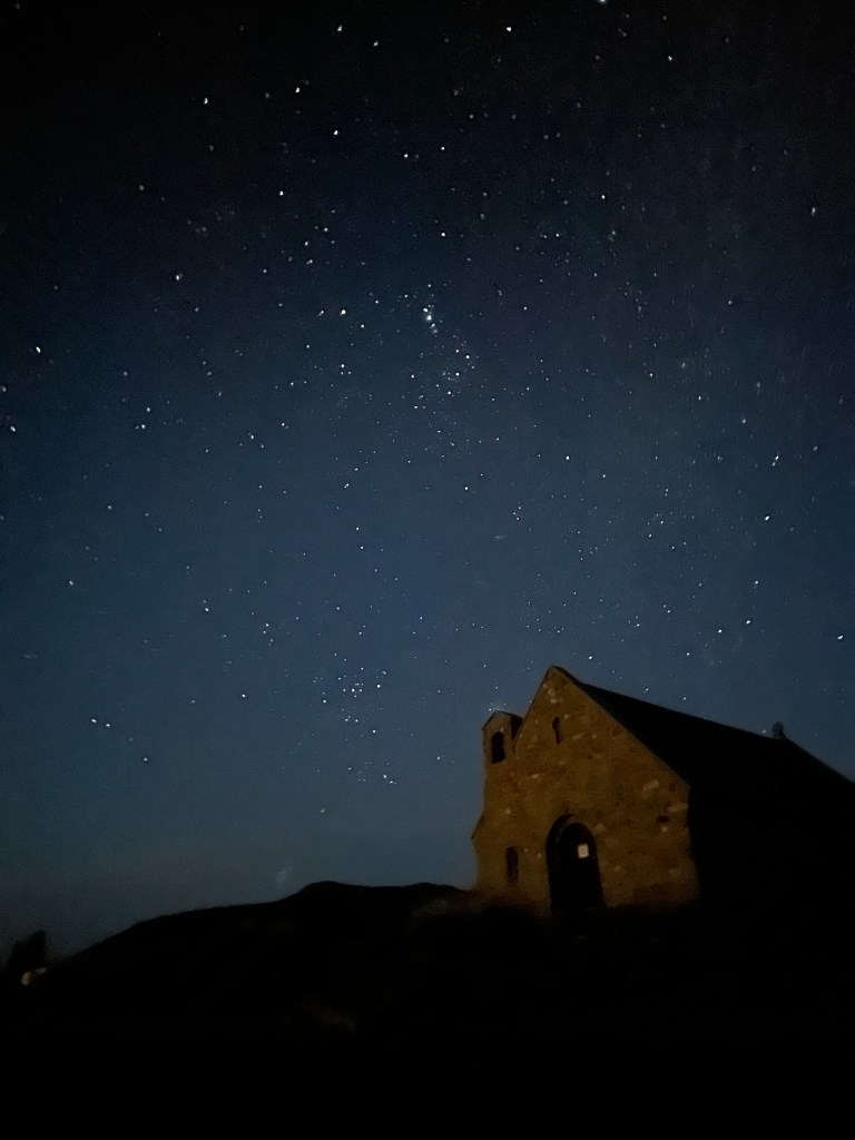 At that point it was after 4:00am. We were tired but so excited by our newfound iphone skills that we went to the Church of the Good Shepherd (the most iconic spot in Lake Tekapo) to take more pictures. We were shaking from the cold, but Justin had to pull me away around 4:45am to go back to the RV to sleep.