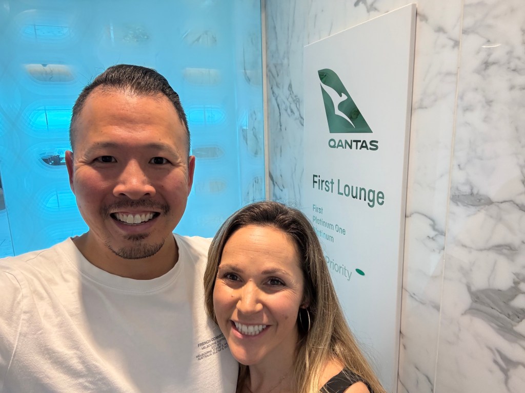 We love flying no matter what, but when we fly without kids, it’s extra special 🙂 And international trips always start with the Qantas First Class Lounge!!