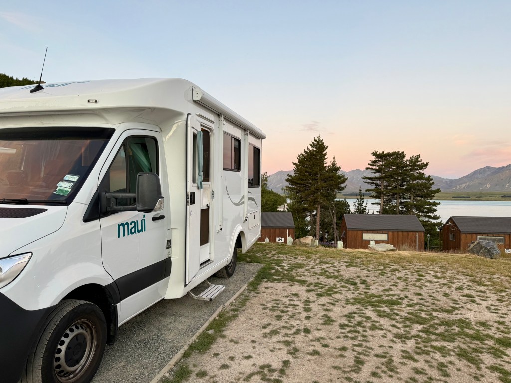 We flew from Melbourne to Christchurch and landed around midnight. We couldn’t pick up the RV until the morning, so we got a hotel near the airport. When I say near, we actually walked our luggage through the airport parking lot and across the street to the hotel (later we realised we could have taken a luggage trolly).