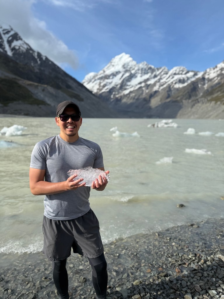 When I say this walk was like being in heaven on Earth, it really was. The scenery was so breathtaking, it was almost hard to take it all in. It wasn’t until I rewatched some of the movies that I felt the breadth of what we were seeing. The hike was incredible. The final lookout of Mt. Cook, with the glacial Hooker Lake below was just stunning.