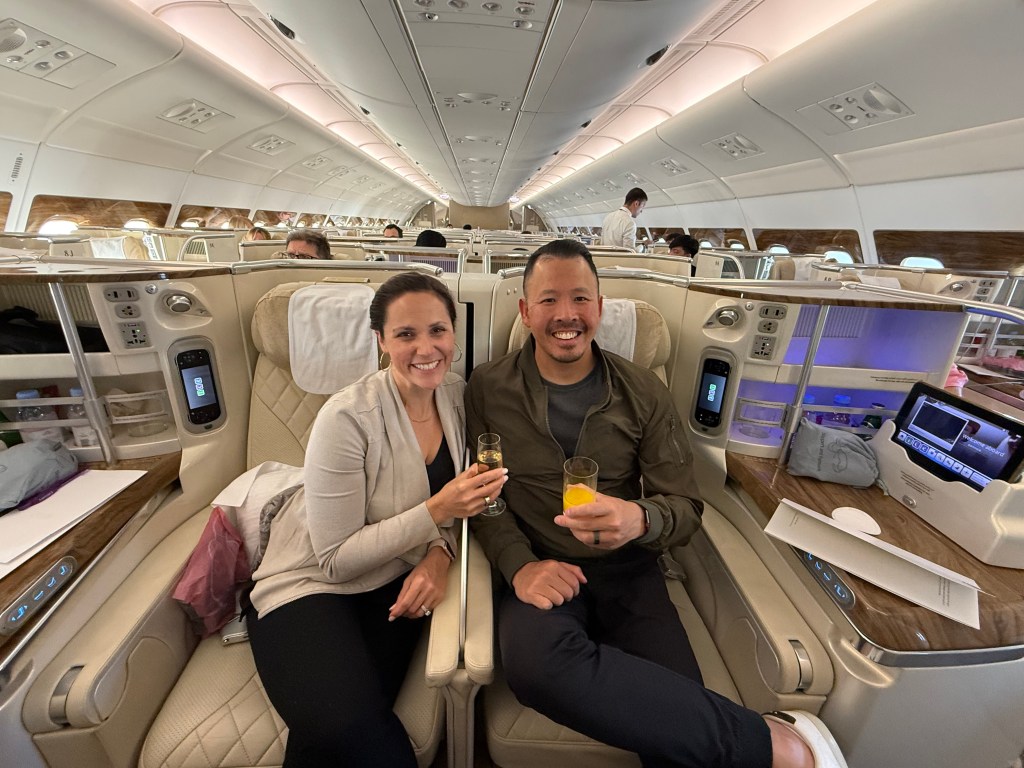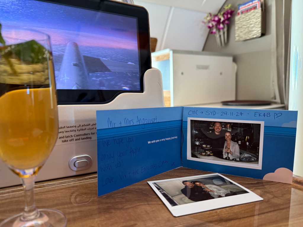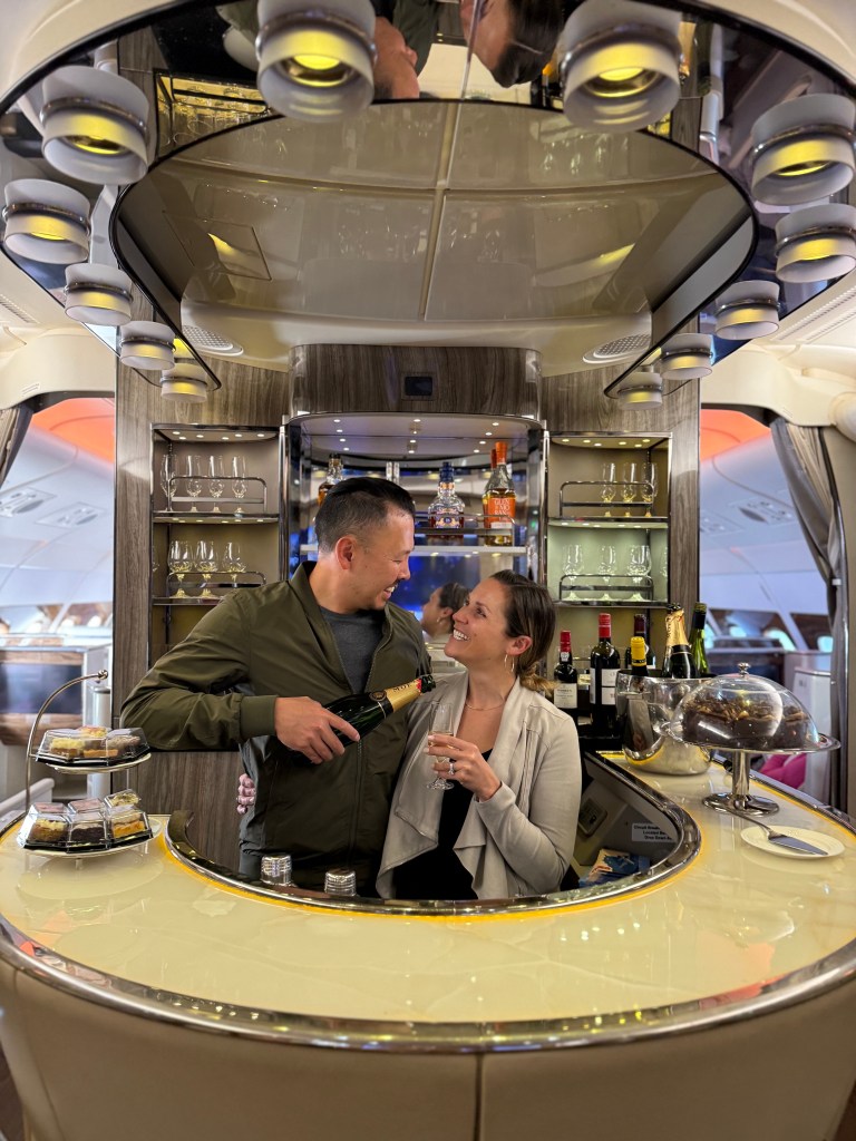 If you think this is where the fun ended, you are wrong. Justin was really excited that an Emirates flight was strangely flying from Christchurch to Sydney, so we used miles to upgrade to business class. We were just like Penelope Cruz in the Emirates commercials, getting some champagne at the bar and enjoying a myriad of snacks and treats. The service was impeccable and it was the best 3 hour flight of my life.